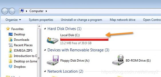 现在,如果转到“ 我的电脑”,您还应该在那里看到C:\磁盘(根驱动器)现在已扩展到虚拟磁盘的最大大小。请记住,该磁盘可能仍然是精简配置的磁盘(如上例所示),并且可能没有像Windows OS所示那样填充VMware VMFS文件系统中的全部空间。